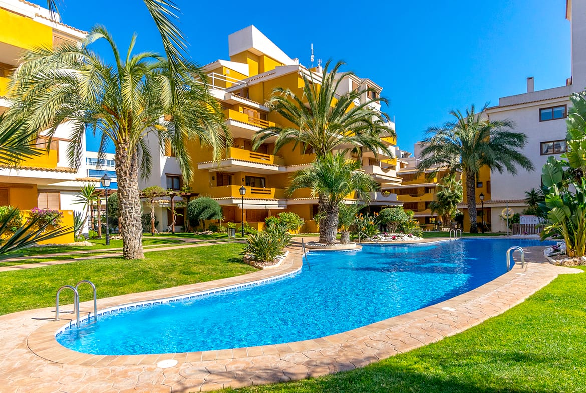 Torrevieja, Costa Blanca, Spain This ground-floor apartment in the La Entrada residential complex in Punta Prima offers 128 sqm of built area with a highly functional layout: two bedrooms, two bathrooms, an independent kitchen, and...