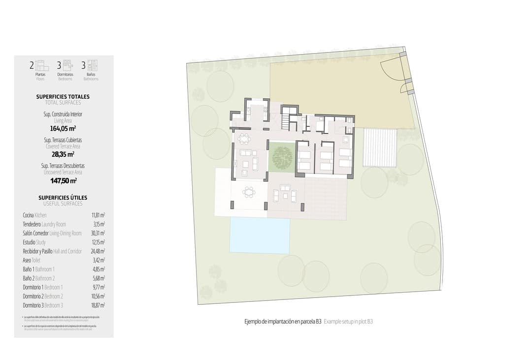 These are very modern villas, completely integrated with their surroundings, that will allow you to live with all comforts, as they are houses built to the highest standards of quality and with the very best materials. They can also be totally customized. In addition, you will have options for all the technology and home automation services that you would expect from your home. The properties include underfloor heating, ducted air conditioning, white goods and home automation system.