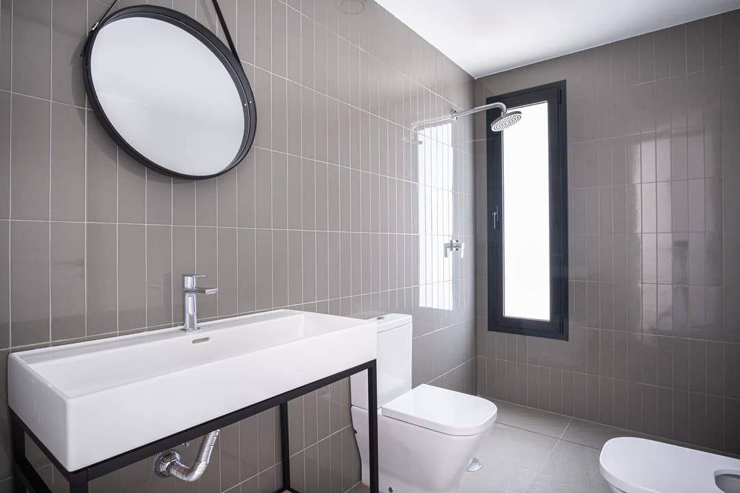 – Kitchen equipped with high and low furniture, provided with induction hob, oven, extractor hood and stainless steel sink with adjustable chrome single lever faucet.