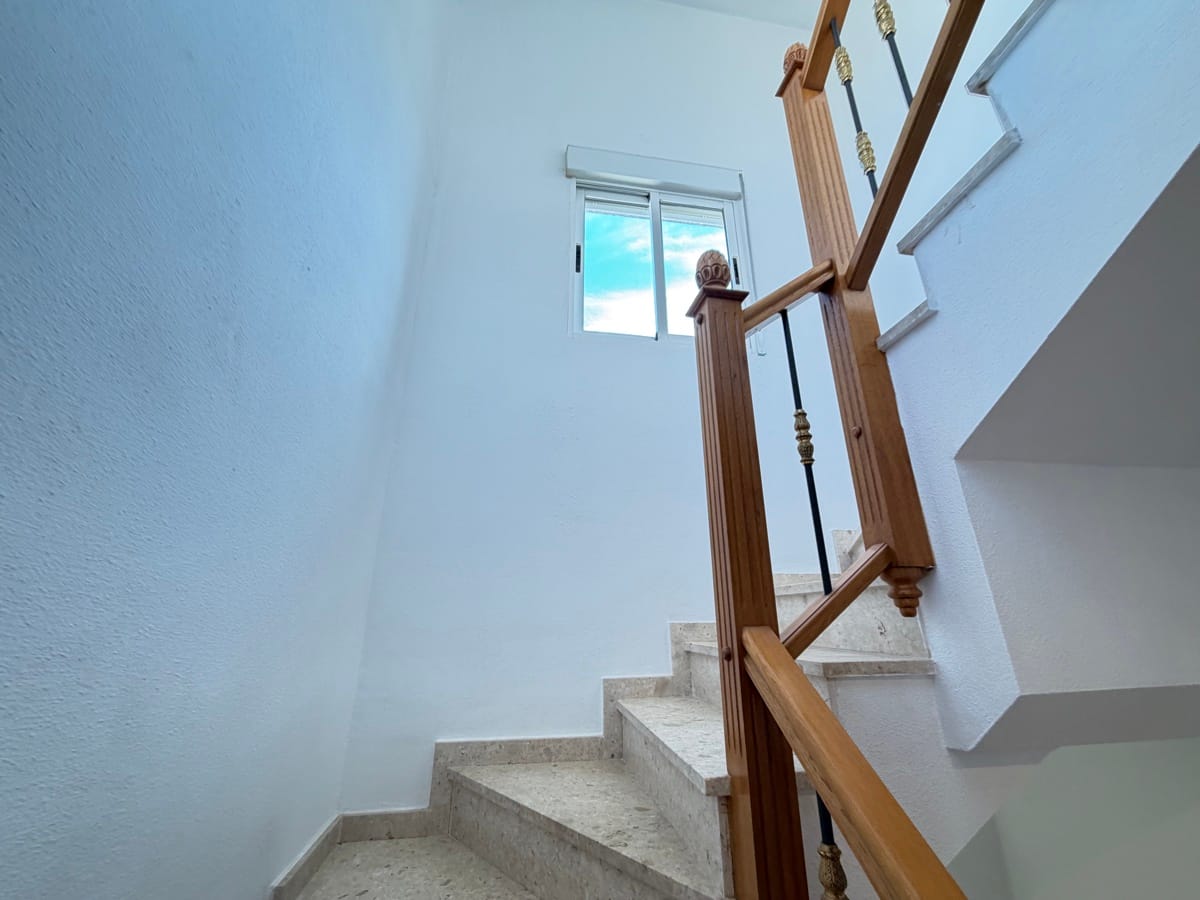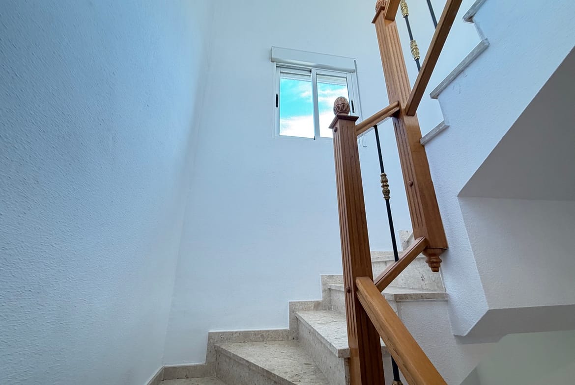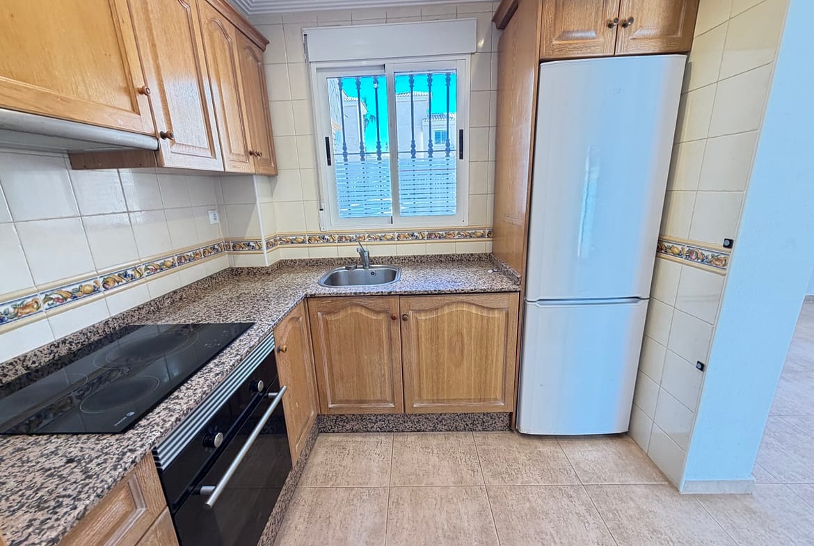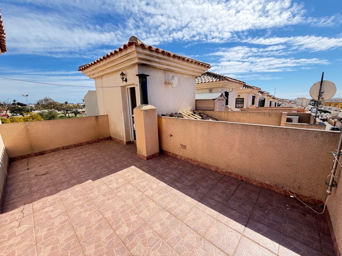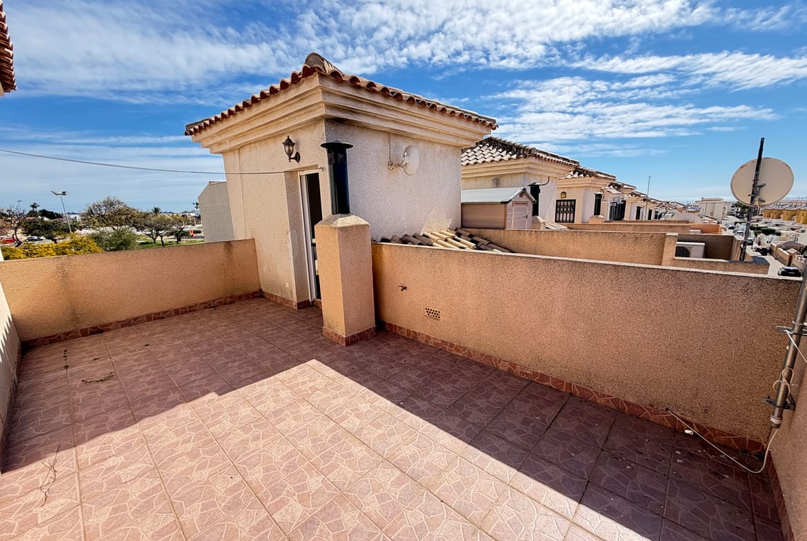 South-Facing 2-Bedroom Townhouse in Los Altos This well-presented south-facing townhouse is ideally located in the sought-after area of Los Altos, offering comfortable living spaces and excellent outdoor areas. The property features both front and rear gardens, perfect for enjoying outdoor living throughout the day. On the ground floor, you will find a spacious lounge, a separate fully fitted kitchen, and a convenient guest WC. Upstairs, there are two generously sized bedrooms, each complete with fitted wardrobes, along with a family bathroom. An internal staircase leads to a private rooftop solarium, where you can enjoy beautiful sea views and sunshine all day long—ideal for relaxing or entertaining. A fantastic opportunity for a permanent residence, holiday home, or investment property.