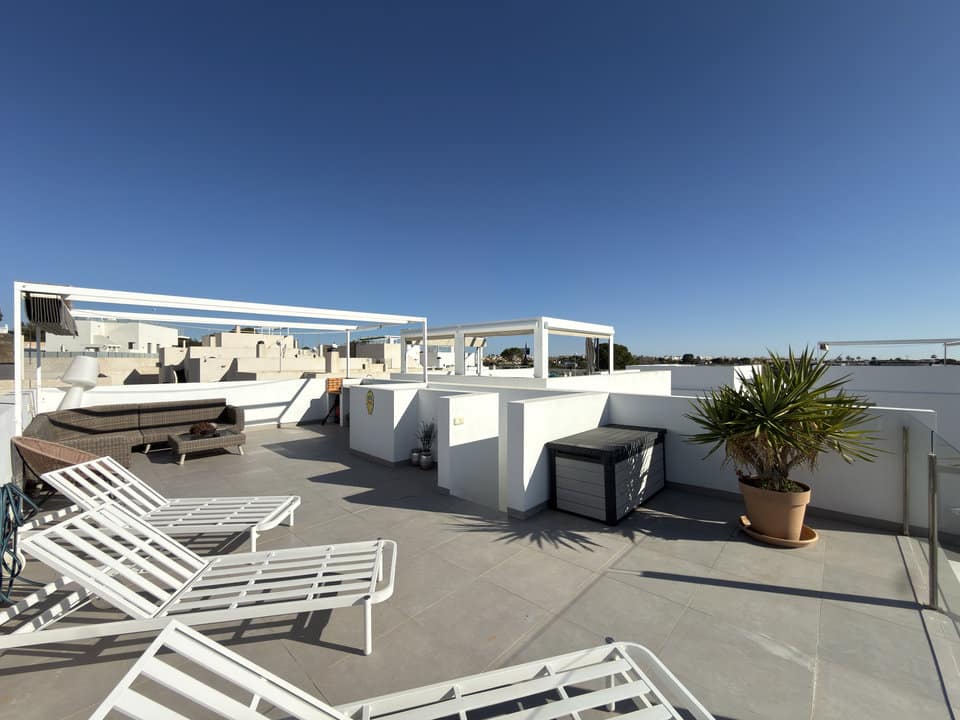 At the top of the property, a solarium offers open sea views, making it an excellent space for relaxing, sunbathing, or entertaining while enjoying the coastal outlook.