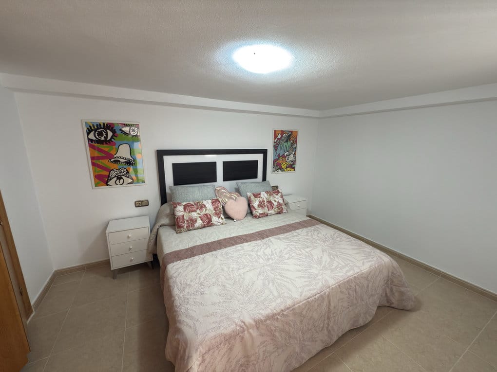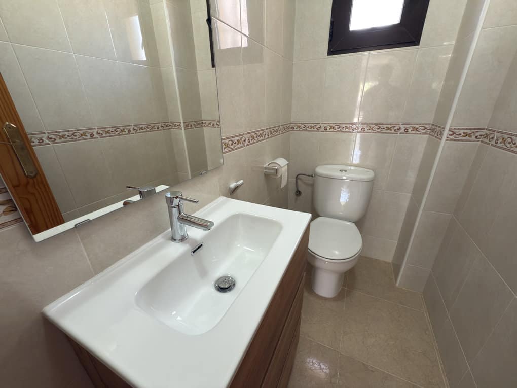 Recently decorated townhouse for sale in Villamartin. This south-facing property has a nice front terrace and porch. On the ground floor, we find a lounge dining room, a separate kitchen with an exterior utility area, and a toilet. Up one level to the first floor, we find two double bedrooms and a family bathroom. Both bedrooms have plenty of wardrobe space, and the master bedroom has a small terrace. There is one more level, which is the basement. The access is external, via the garden and the distribution consists of a double bedroom, lounge, American kitchen, bathroom and separate room for storage, gym, playroom, etc… This property does not have a communal swimming pool but the front garden is big enough for a Jacuzzi or above ground swimming pool.