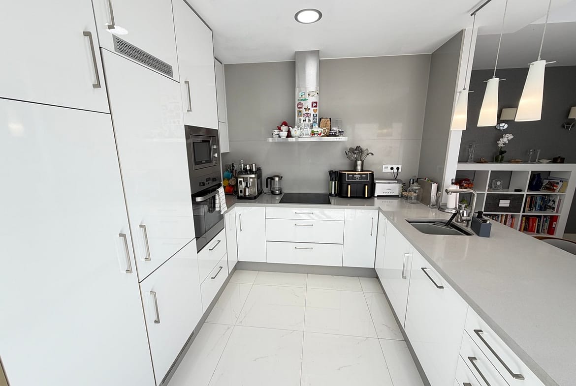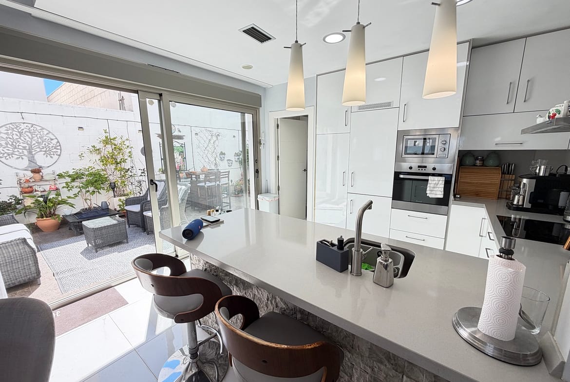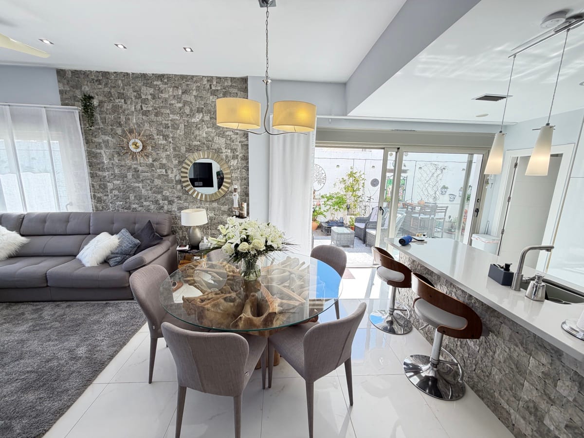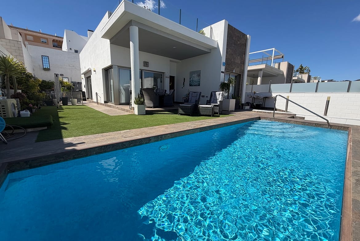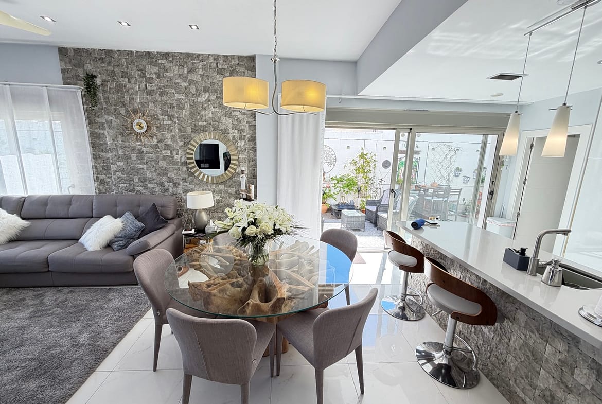 Stunning 3-Bedroom Single-Storey Villa in Pau 26, Villamartin This splendid three-bedroom, single-storey villa is ideally situated in the sought-after Pau 26 area of Villamartin. Positioned on a desirable corner plot along a private road, the property offers both privacy and generous outdoor living space. The exterior boasts a spacious garden with multiple seating areas, a private swimming pool, and off-road parking. A standout feature is the expansive rooftop solarium, complete with a jacuzzi and outdoor kitchen—perfect for entertaining while enjoying panoramic views of the surrounding area. Inside, the villa features a bright and modern open-plan living space with a large, well-appointed kitchen. There are three generously sized double bedrooms, including a master bedroom with en-suite bathroom, as well as a separate, spacious family bathroom. Offered unfurnished, this property is ready for immediate occupancy—making it an ideal choice for a permanent residence, holiday home, or investment opportunity.