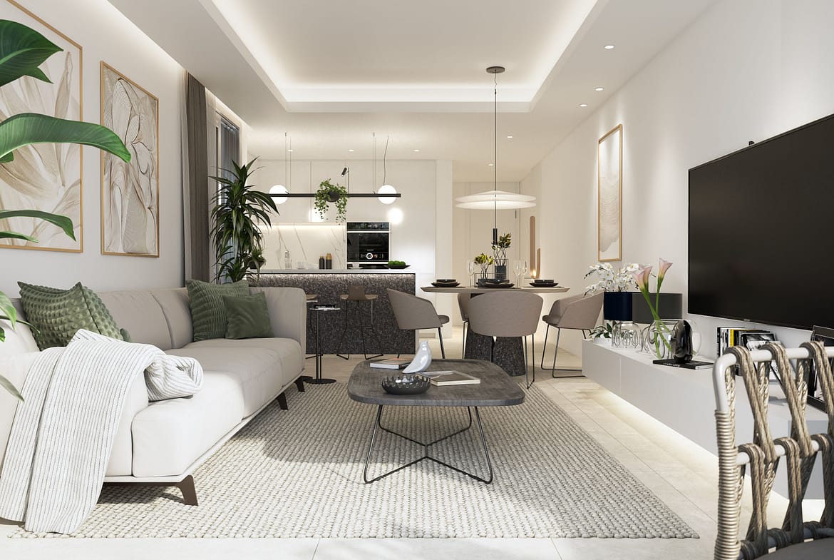 The area has chiringuitos, restaurants, sports areas, seaside walks and amazing green areas, that turns this area into one of the most attractive on the mediterranean coastline. The apartments are designed with contemporary styles, high finishes with sea views and interior spaces thought out for comfort.