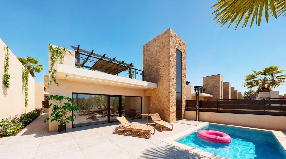 This modern 3-bedroom, 2-bathroom villa is located in a quiet residential area of Fuente Álamo, surrounded by natural and mountainous scenery. Designed with contemporary living in mind, the villa features a bright open-plan layout that creates a spacious and welcoming atmosphere. Outside, the property offers a private garden with a private swimming pool, ideal for outdoor living and relaxation. A private parking space is included for added convenience. Set within a peaceful residential environment, this villa is an excellent choice for family living, a holiday home, or an investment property.