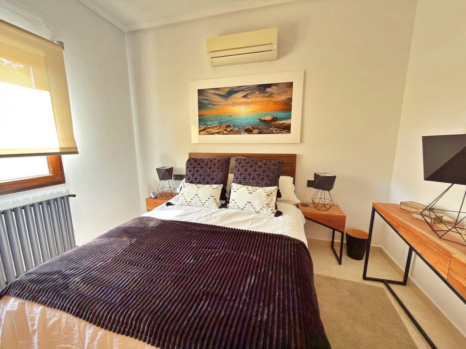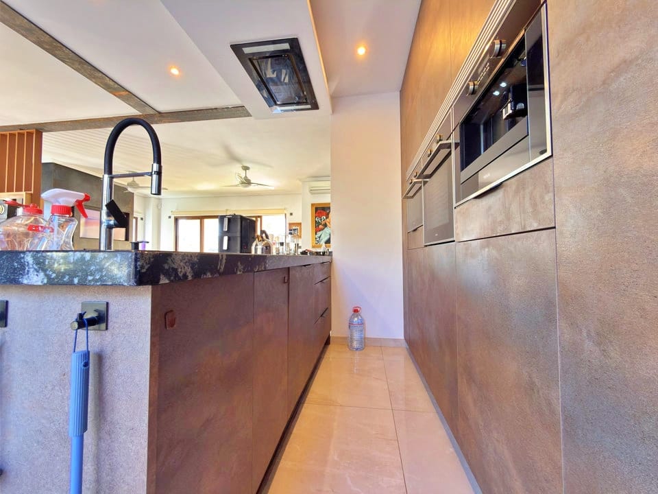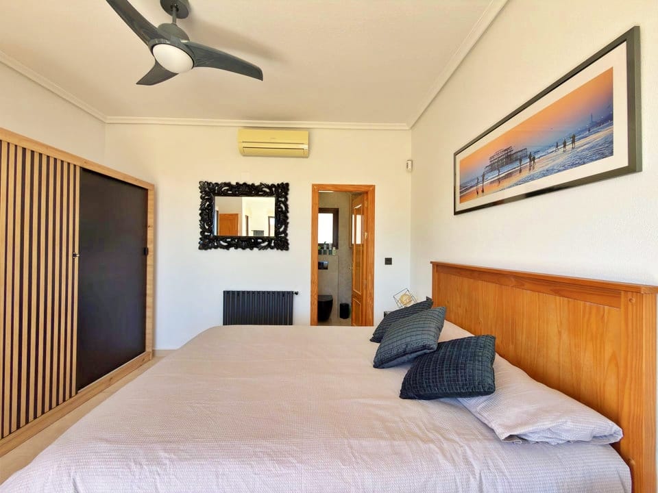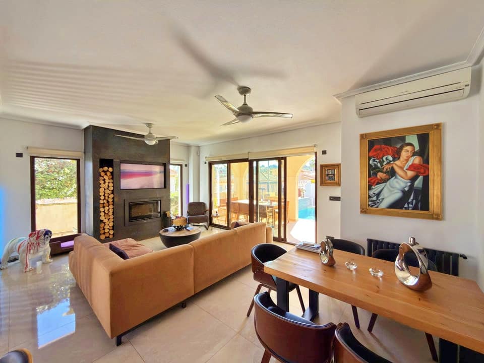 Inside, the villa has been fully modernised to a high standard. The ground floor features a bright and airy open-plan layout, seamlessly connecting the fully equipped kitchen with the lounge and dining area.