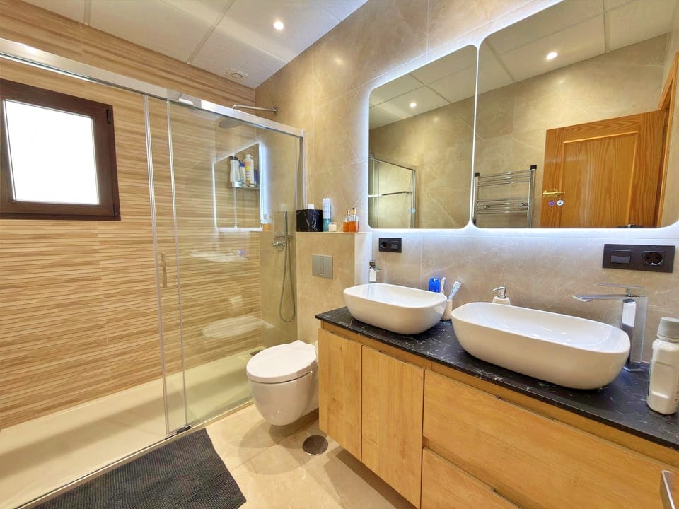 Upstairs, the property continues to impress with two additional bedrooms. The principal bedroom benefits from an en suite bathroom and direct access to a private terrace. The fourth bedroom is served by a separate bathroom, providing flexibility for guests or family members.