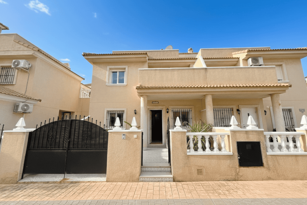 This new listing is set in the fantastic complex of Las Marinas set in the heart of La Zenia / Cabo Roig, it is only a 5 minute walk to the Cabo Roig strip and 10 minutes to the famous Paddies Point and all the bars and restaurants of La Zenia, and last but not least it is only a 15 minute walk to the blue flag award winning beach and Marina of Cabo Roig. This property has the choice of 2 or 3 bedrooms; the current owners prefer the 2-bed style, with the 3rd being used as a dining room. You also have a large independent kitchen/utility room. The house has everything you would need for a permanent home or for a holiday home and it comes fully furnished with ac throughout and also a real fireplace in the lounge, it also has 3 different outside sitting areas from the front garden area which has ample space for your garden furniture to the large balcony off the main bedroom to the amazing Solarium with sea views. The upper level has 2 large double bedrooms and a fantastic family bathroom with an internal staircase to your own private solarium. Las Marinas is a small complex with the use of an amazing communal pool and gardens, and this property must be seen. The current owners love the location and the amazing space this house provides; it is like a home from home, and this house is one not to miss.
